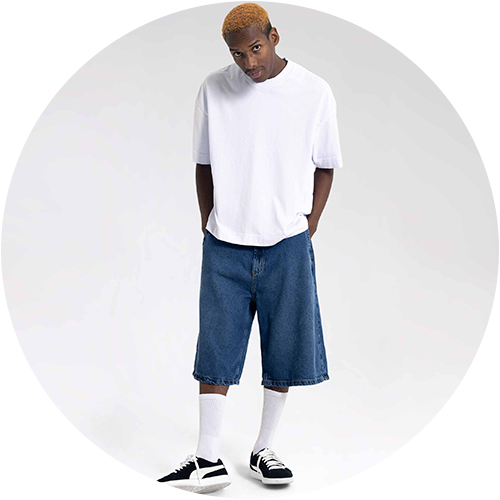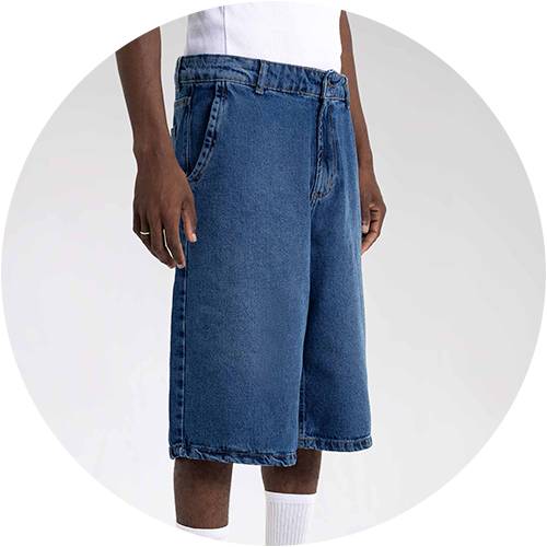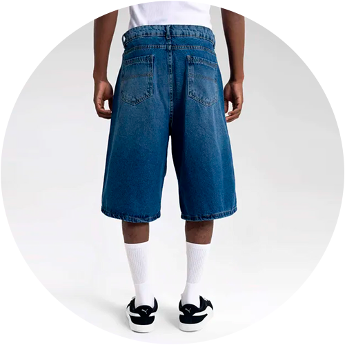 O caimento Jorts traz o equilíbrio perfeito entre conforto e estilo urbano. Inspirado nas bermudas jeans largas dos anos 2000, esse modelo possui silhueta ampla, pernas mais retas e comprimento abaixo do joelho, proporcionando um visual relaxado e autêntico. Ideal para quem busca liberdade de movimento sem abrir mão da atitude street, o caimento Jorts combina perfeitamente com camisetas oversized, regatas e tênis robustos — um clássico revisitado com essência contemporânea.